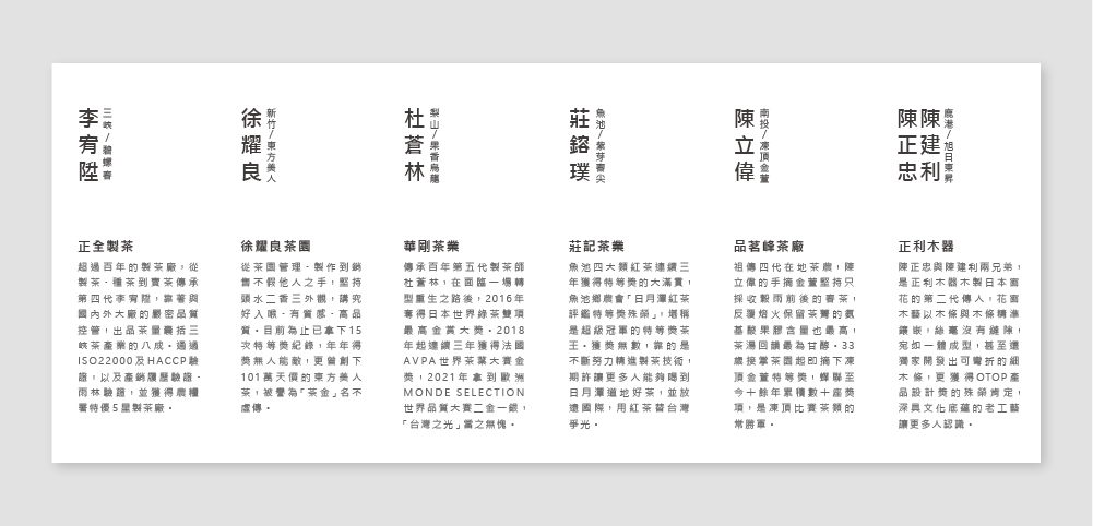 「飛花落院」魏幸怡執行長因為愛茶、品茶,特別邀集在全台不同茶系,獲獎無數的五位製茶大師,碧螺春-李宥陞、東方美人-徐耀良、果香烏龍-杜蒼林、紫芽春尖-莊鎔璞、凍頂金萱-陳立偉,限量推出五大製茶師金選-旭日東昇。